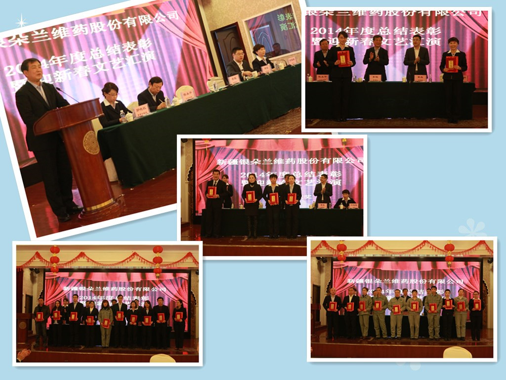 2015年2月13日我公司举办了2014年度经济总结暨迎新春文艺汇演,全体员工欢聚一堂,一起回顾2014年公司取得成果,并携手展望2015年。 总经理黄磊做2015年度经济报告——《夯实基础,借力三版,为实现维药产业化发展而努力》为此次活动拉开了序幕。从集团团委书记、董事长、总裁李俊激情昂扬的讲话中,我们有理由相信:2015年注定是充满机遇和挑战的一年,更是充满激情和梦想的一年,相信在新的一年里,公司将迎着新三板上市的契机进入一个新的高潮,再谱写新篇章。 文艺汇演的节目是汲取全体职工的力量编排出来的。节目不仅展示了员工的精神面貌,更能展现出银朵兰人坚持不懈的风采。总经理黄磊带领高层演唱《相信自己》,这首歌不仅表达领导带领银朵兰全体员工开创新纪元的必胜信心,更唱出了员工紧跟银朵兰步伐的决心,质量管理部带来的动感舞蹈《向前冲》、制剂车间带来的幽默小品《重返银朵兰》、提取车间和营销公司带来的戏曲串烧、财务部带来了取材于现实的三句半《峥嵘岁月·维药典范银朵兰》为活动添色不少、营销公司带来的情景剧《福禄娃》、以及设备动力部和行政部携手带来的歌曲《奔跑》。最后,当集团党委书记、董事长、李俊宣读司龄25年以上的老员工的名单时,全体起立,掌声不断,并将晚会推向了高潮、“公司的老员工以其突出的奉献和敬业精神成为企业最为宝贵的财富,我们要向这些老大哥老大姐们学习,向他们致敬。”李总说道。 光辉灿烂的2014年过去了,充满希望和挑战的2015悄然来临。在过去的一年里我们微笑过、艰难过、失去过、也收获过,面对2015,我们满怀憧憬,激情澎湃,有更好的产品等着我们去开发,更大的市场等着我们去征服,更壮观的事业等着我们去挥洒智慧和才能,让我们一起用信心和勇气,昂首阔步,去书写一个更灿烂的未来。
