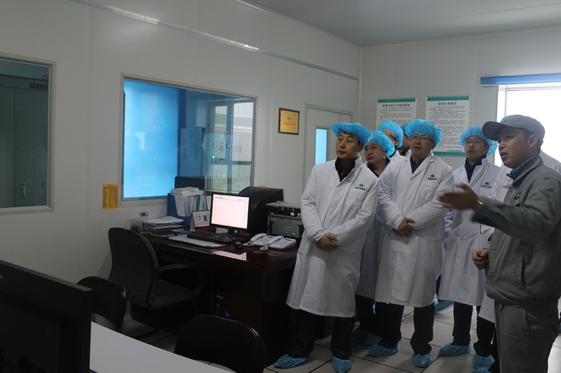 参观团一行在何书记的讲解下了解了药业公司的厂区分布及目前生产规模后,来到提取车间,按照《银朵兰维药更衣管理规程》更换洁净服进行参观活动。了解了复方一枝蒿以及祖卡姆等药业公司维药明星产品。对银朵兰自有的一枝蒿种植基地表示极大的关注。在参观自动化中药提取生产线的同时,表示希望能够有优质型企业与地市合作的机会,招商引资,大力发展经济。  |