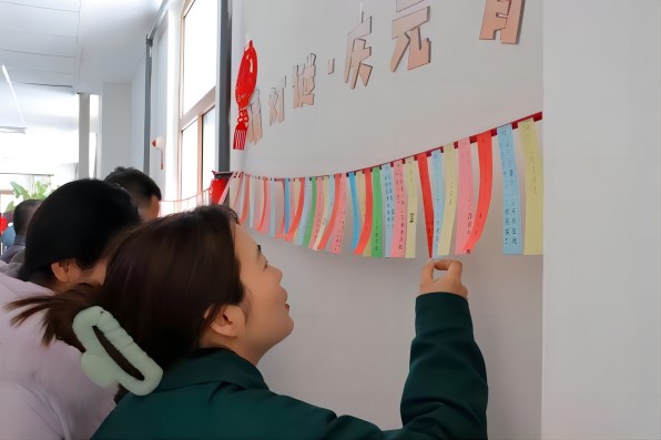 活动现场使用红丝带、灯笼、福字等进行装饰,彩色灯谜谜面交错悬挂其间,喜庆热闹,员工热情高涨,竞相参与,喜笑颜开。每一个员工都在猜出谜底之后,带着满满的成就感取下一条灯谜前去领奖,沉浸在节日的欢乐中。
